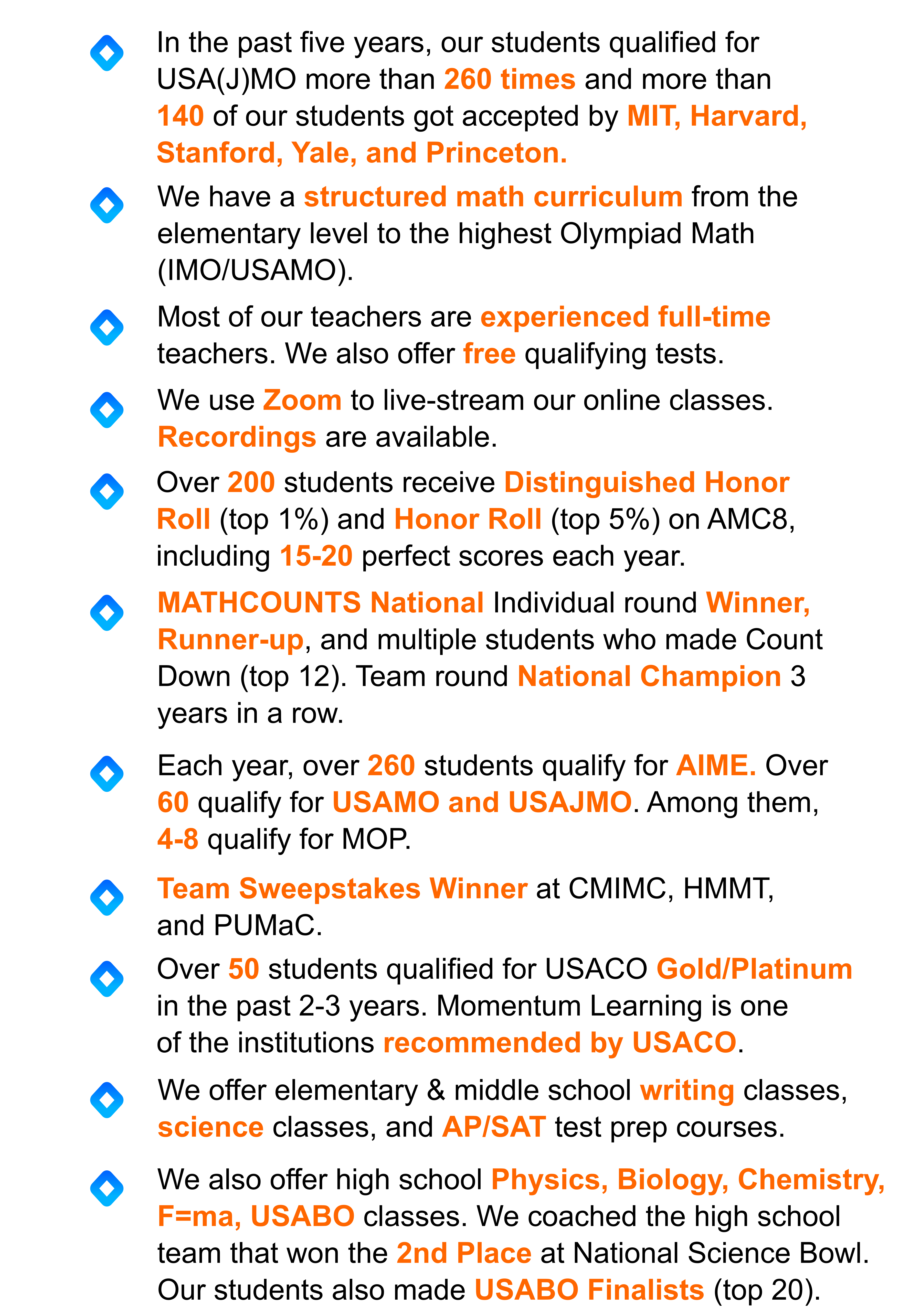 2026 Spring Online Classes can be found below: Elementary School Read More Middle School Read More High School Read More Contest Math Read More Coding Read More AP Exam Prep Read More 2026 Spring In-Person classes can be found below: In-PersonIn-person classes on Contest Math, School Math and more! Read More
